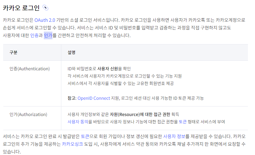 OIDC는 앱 키의 정보를 jwt 토큰 내에서 확인할 수 있기 때문에 검증된 토큰이라면 현재 서버에서 등록한 앱으로 발급된 토큰임을 확인할 수 있습니다. 또한 서비스에서 각 사용자를 식별할 수 있는 고유한 회원번호 제공하기 때문에 변경되지 않는 고유한 값으로 인증할 수 있고 인증 프로토콜이기 때문에 OIDC를 지원하는 곳이라면 사용할 수 있습니다.