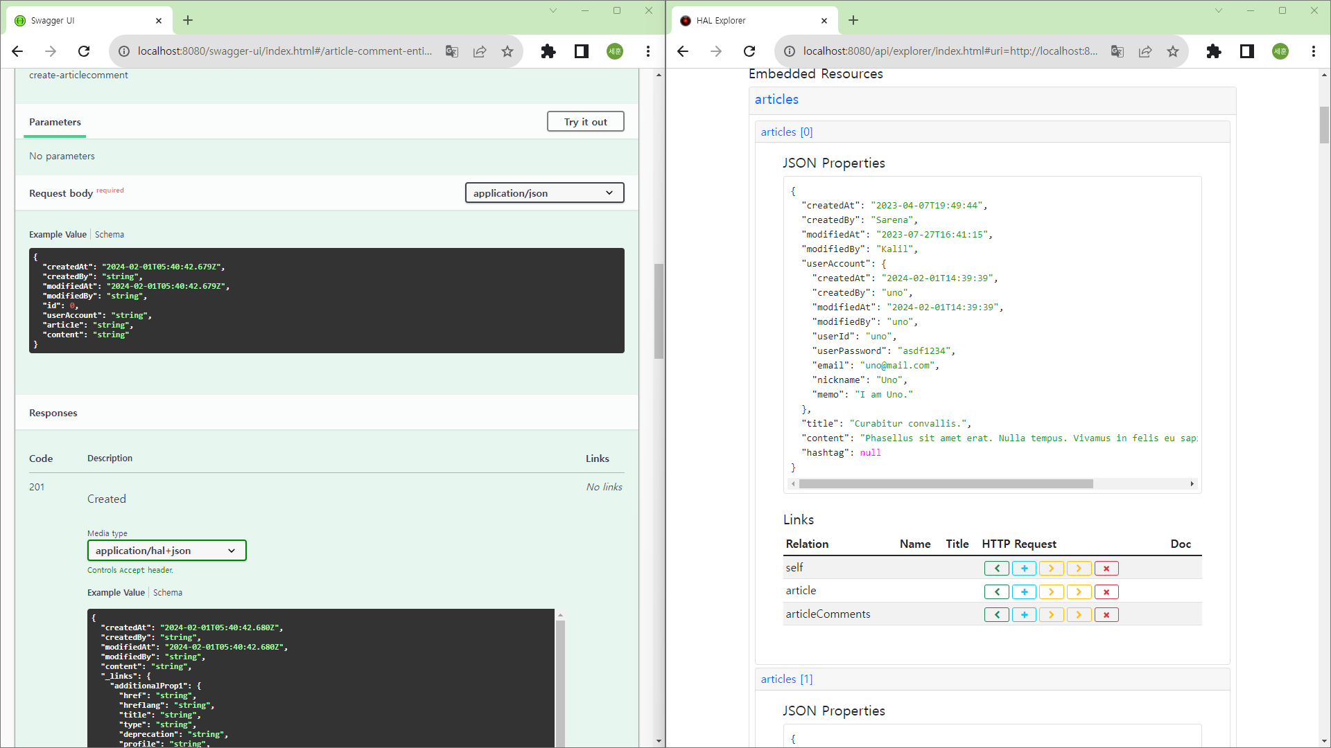 마지막으로 아래는 swagger와 Har Exploer를 비교한 사진입니다.